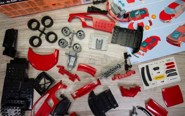 Included with each model are a full set of easy-to-follow colour instructions, free-rolling wheels for cars and tanks, and display stands for all the aircraft. Audi R8 Coupe The Audi R8 is a mid-engine, 2-seater sports car, which uses Audi's trademark quattro permanent all-wheel drive system. The car is exclusively designed, developed, and manufactured by Audi AG's private subsidiary company manufacturing high performance automotive parts, Audi Sport GmbH (formerly quattro GmbH), and is based on the Lamborghini Gallardo and presently the Huracán platform. 45 parts make up this supercar.