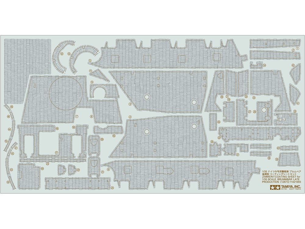This is a 1/35 scale plastic model assembly kit. Length: 168mm, width: 94mm. The kit gives a highly accurate recreation of the Brummbär with its stubby 15cm gun. Gun barrel offers elevation and depression. Traverse motion is in tandem with sight and cover. Five Schürzen plates are attached and can be removed individually, for a variety of looks. Parts are included to recreate rubber-rimmed and all-steel road wheels, used in different combinations depending upon chose marking option. Comes with a commander torso figure for the cupola, and a full-body crew figure. Decals for two marking options are included.