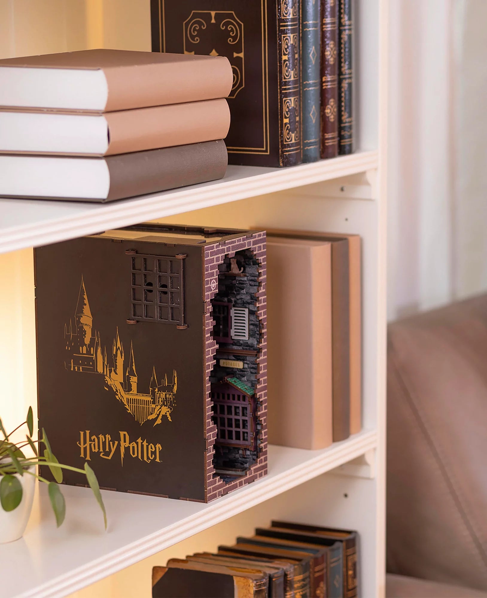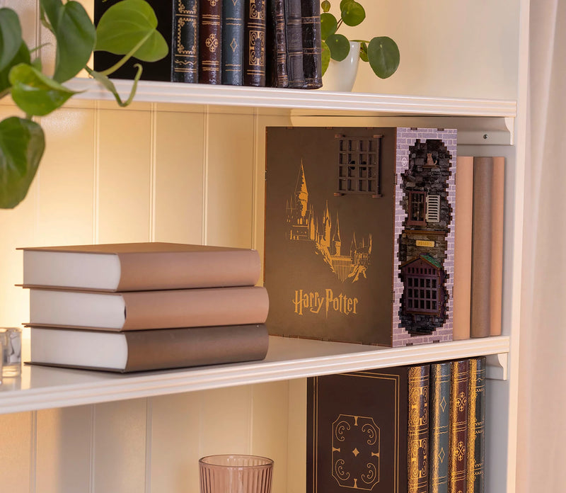 With 202 precisely manufactured components the kit shows the famous Diagon Alley in impressive detailed detail. From the iconic buildings to the small characters - each element was carefully designed to bring the magic of this street to life. The Book Nook is specifically designed to transform your bookshelves into a magical backdrop that upgrades every room.