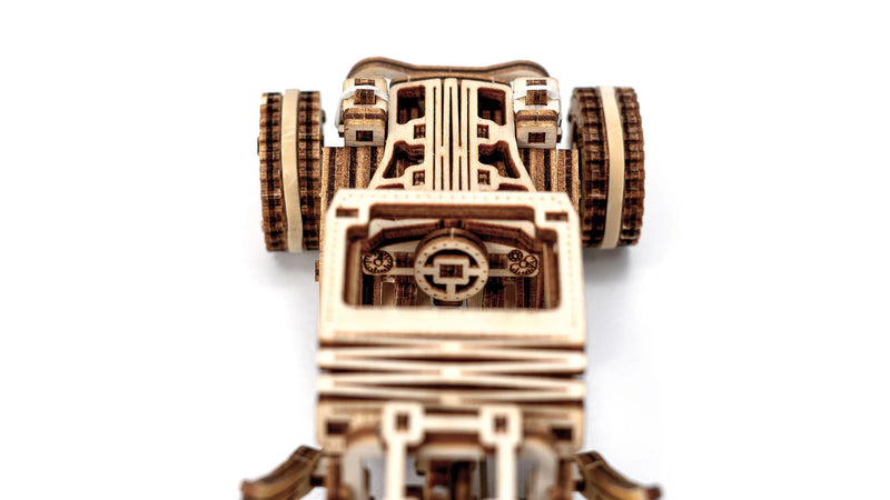 The idea behind the Tiny Adventures Buggy comes from the tradition of mechanical models that were popular in the early 20th century. At that time, such constructions fascinated hobbyists and technology lovers alike. With modern technologies such as laser cutting processes and sustainable materials, we breathe new life in this tradition. The buggy combines nostalgia with innovative technology and makes mechanics tangible than ever before. It is not just a model, but a tribute to the art of movable wood mechanics.