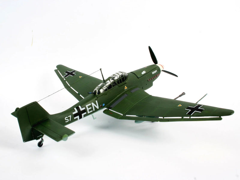 If you are a fan of the history of the air war and the legendary German battle pilot Junkers Ju87 g/d, you will love this model kit! With a number of parts of 62, a length of 155 mm and a span of 211 mm, this kit is presented in a scale of 1:72 as a true masterpiece for enthusiastic model construction. Suitable for all from 10 years and classified at level 3, the kit offers the perfect mix of detailed and handling difficulty.