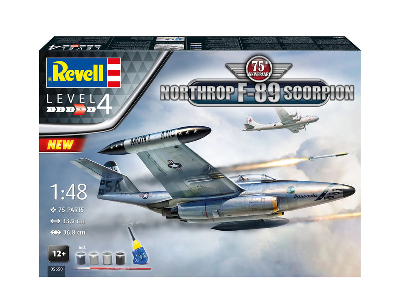 Get history alive with our highly detailed model kit of the Northrop F-89 Scorpion, which will be released on a scale of 1:48 on the 75th anniversary. This model, with its impressive number of parts of 120 and a span of 368 mm with a length of 339 mm, is a faithful replica of the first two-seater all-weather fighter aircraft of the United States Air Force.