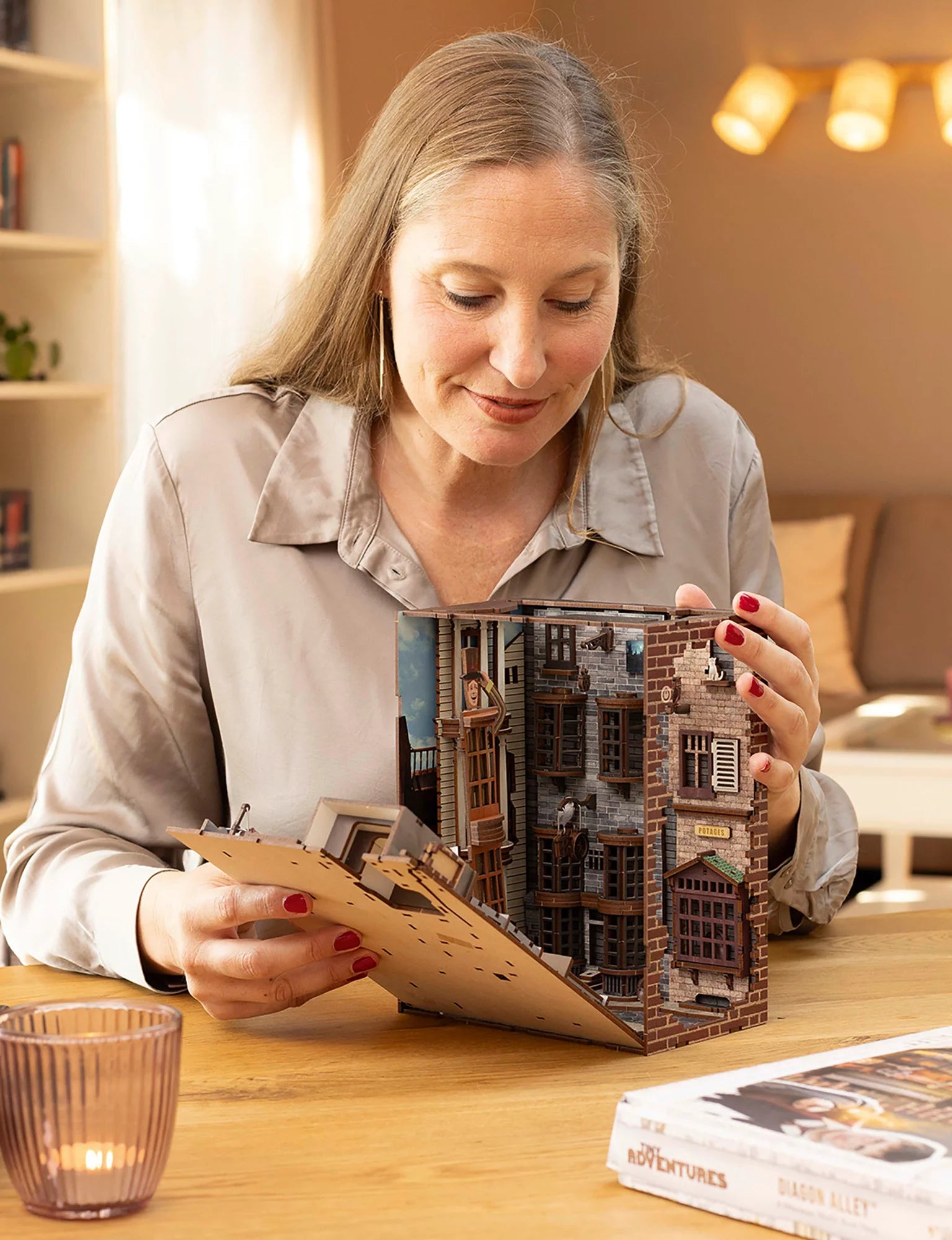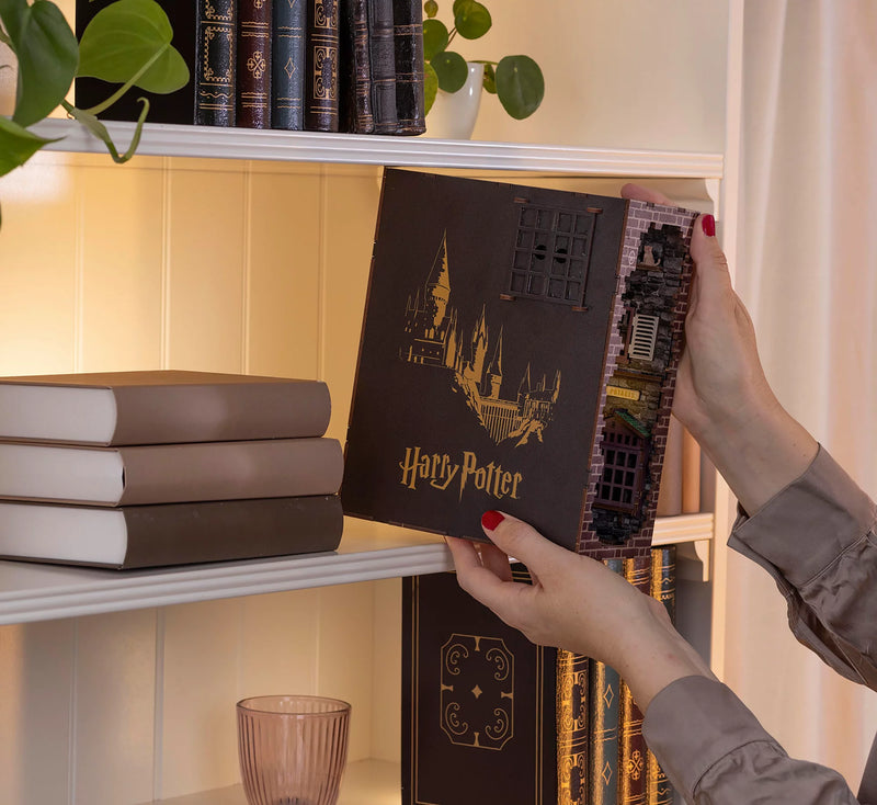 With 202 precisely manufactured components the kit shows the famous Diagon Alley in impressive detailed detail. From the iconic buildings to the small characters - each element was carefully designed to bring the magic of this street to life. The Book Nook is specifically designed to transform your bookshelves into a magical backdrop that upgrades every room.