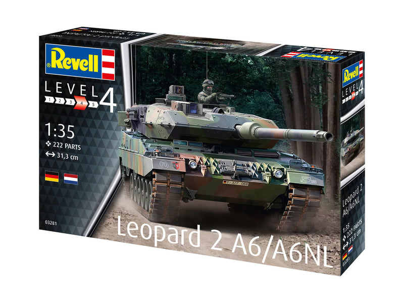 The 1:35 scale kit includes finely detailed surface structures that authentically reproduce the original tank. The rotating tower gives your model a dynamic note and enables you to add different positions. The model represents both the German Bundeswehr version and the Dutch Army version of the Leopard 2 A6, whereby each detail was meticulously recorded.