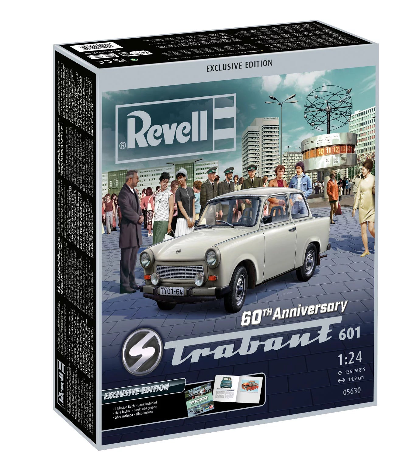 The Trabant 601, which was produced in the VEB Sachsenring automobile works in Zwickau from 1964, was the most built and best known model of the Trabant series. With over 2.8 million copies produced, it became the epitome of mobility in the GDR. His distinctive thuroplastic body and the characteristic sound of the two-stroke engine made the Trabi an icon of everyday culture. This "Exclusive Edition" of the model kit celebrates the 60th birthday of Trabant 601 and gives you the opportunity to build this symbol of the east in every detail.
