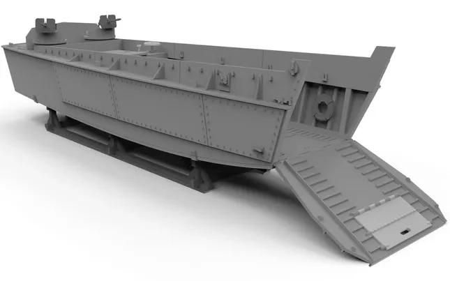 The Landing Craft, Vehicle, Personnel (LCVP) or Higgins Boat was one of the most vital pieces of Allied naval equipment of the Second World War. Used not only during Operation Overlord and the invasion of occupied France, but also throughout American naval operations in the Pacific, proving to be particularly useful during the operations at Okinawa and Iwo Jima. With a shallow draught and full-width bow ramp it was able to offload its cargo and leave the beach in just 3 to 4 minutes.