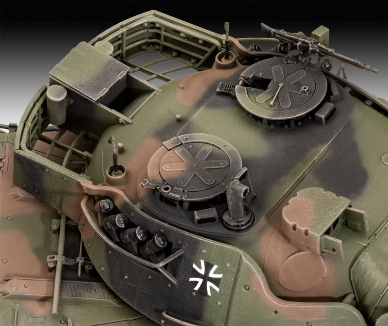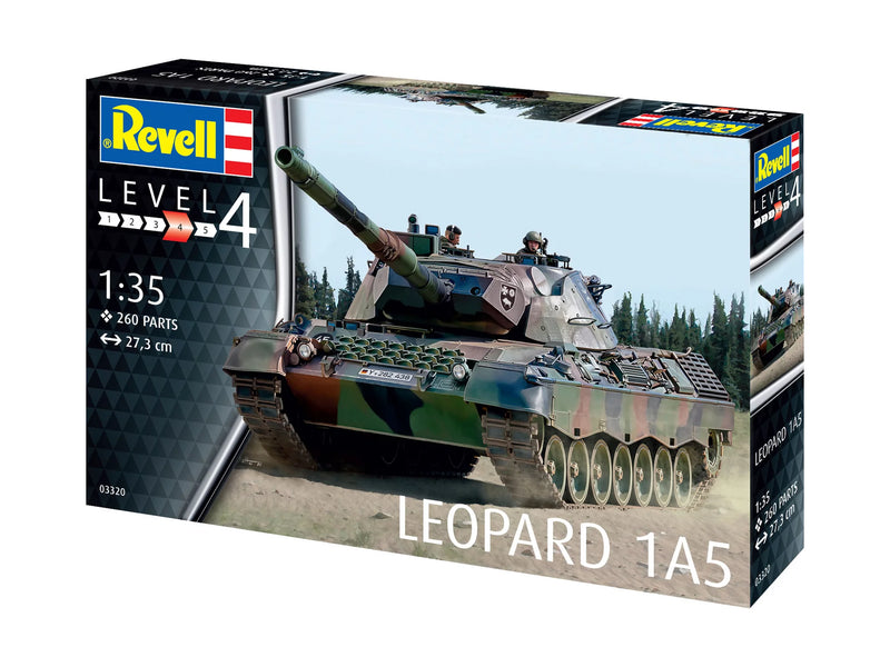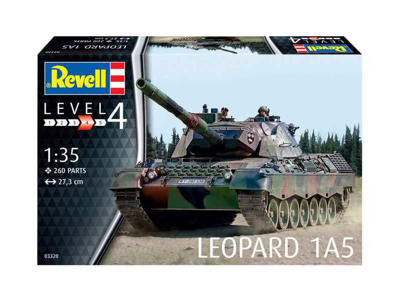 Model kit of the German Leopard 1A5. Between 1986 and 1992, the Leopard 1 received a combat value increase, which included an improved fire area. Correspondingly converted vehicles were referred to as Leopard 1A5.