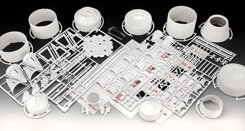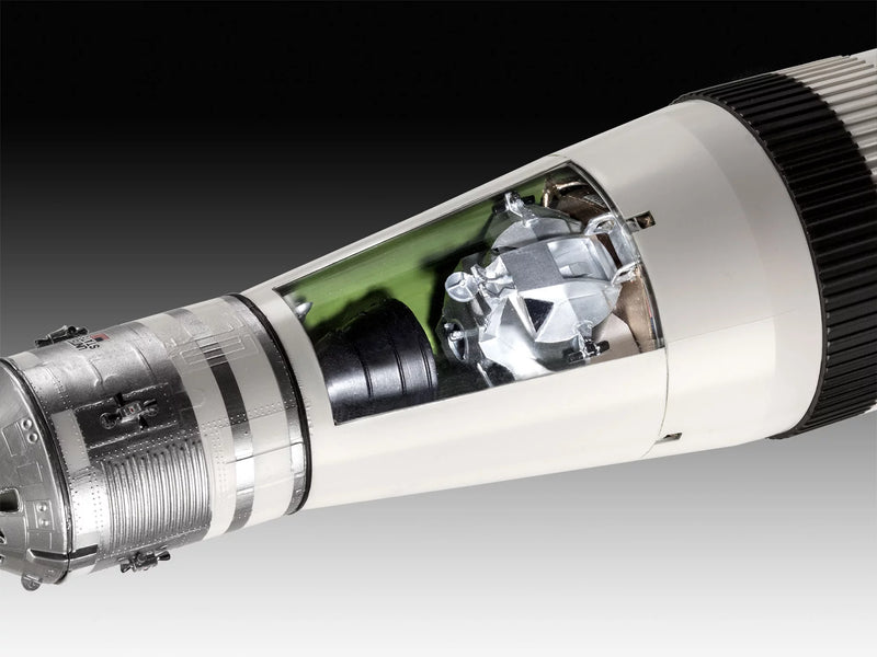 The Apollo 11 Mission marks a milestone in the history of space travel. On July 16, 1969, the mighty Saturn V Raket started Cape Canaveral and initiated the most important journey of mankind. The Saturn V, with its three main stages and a height of 110 m, was the vehicle that brought the astronaut Neil Armstrong, Edwin Aldrin and Michael Collins on their historical journey to the moon. After a 394,000 km long journey and 72 hours they reached their destination. With this model kit you can reproduce every detail of this legendary rocket and immortalize a piece of history in your home. Ideal for collectors and space enthusiasts!