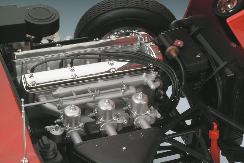 The Jaguar E-Type Model kit includes everything you need to create this impressive vehicle: movable doors and window panes, detailed front wheel suspension with springs, chrome-plated spoke wheels and a metal axis. In addition, the package contains a multilingual, illustrated building instructions that leads it step by step through the structure.